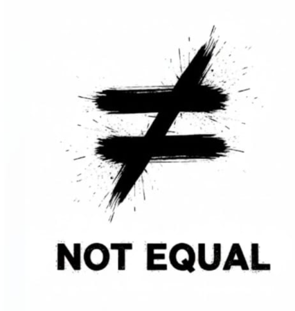 Our signature logo — a bold, handcrafted "not equal" symbol — represents those who refuse to conform, who embrace their unique journey, and who understand that true distinction lies in authentic self-expression.
